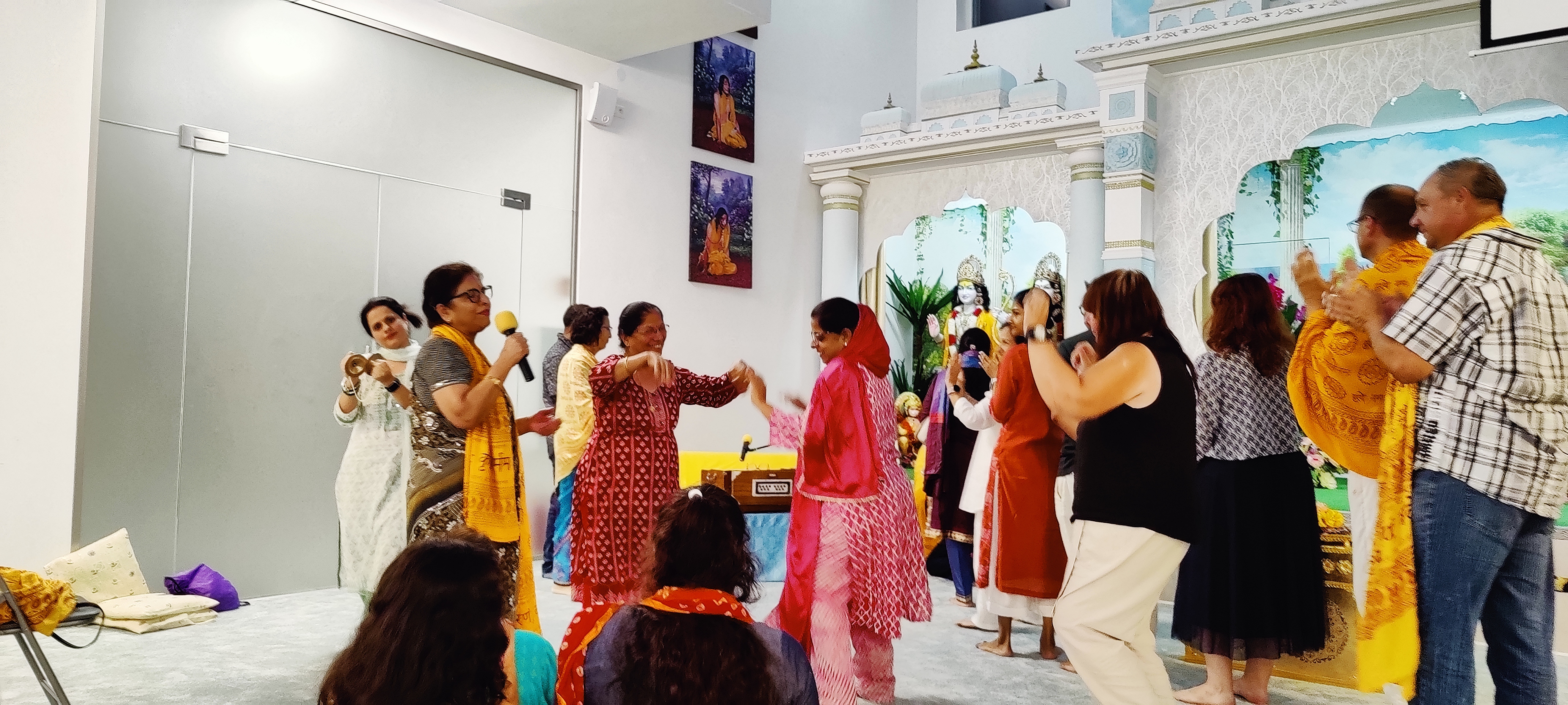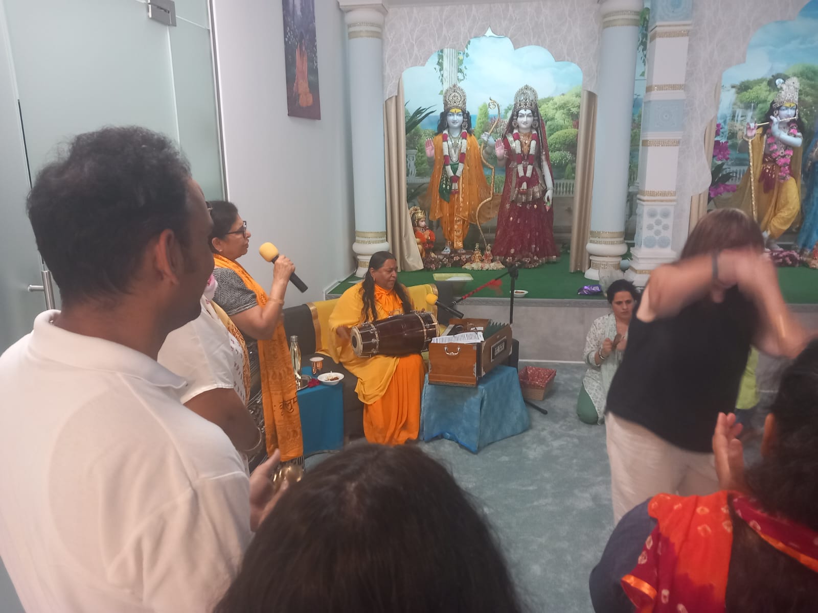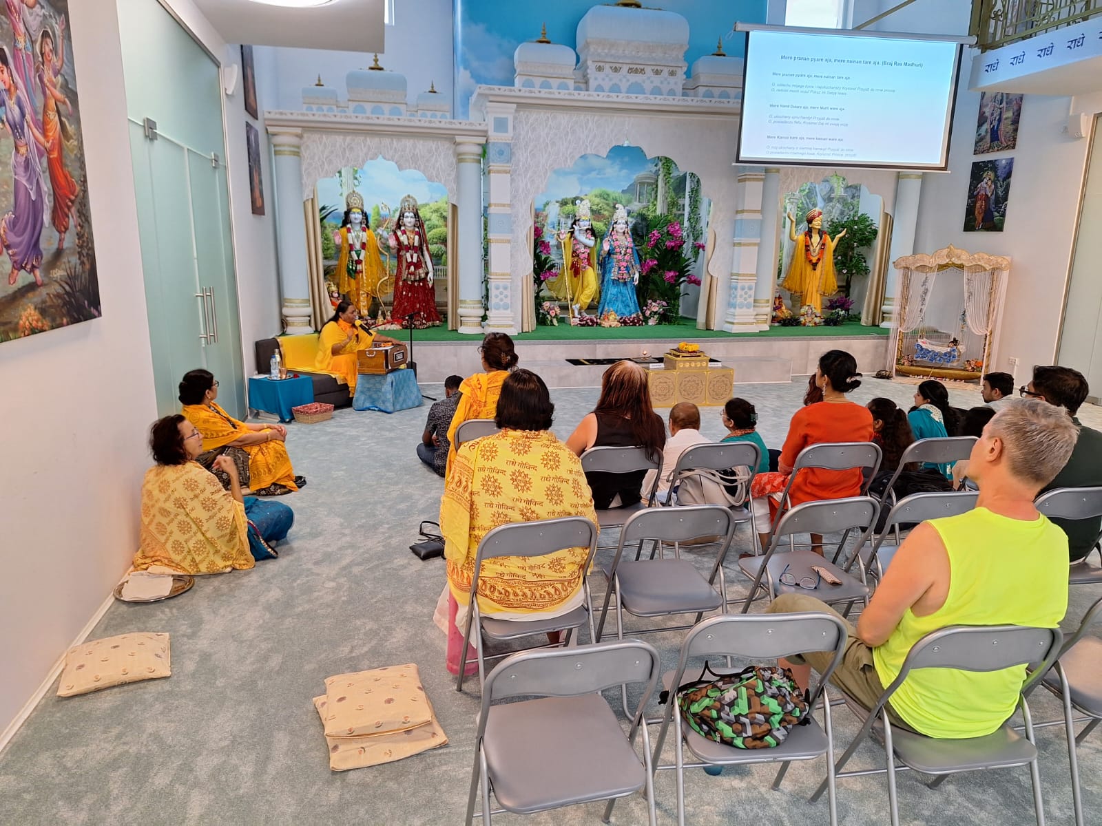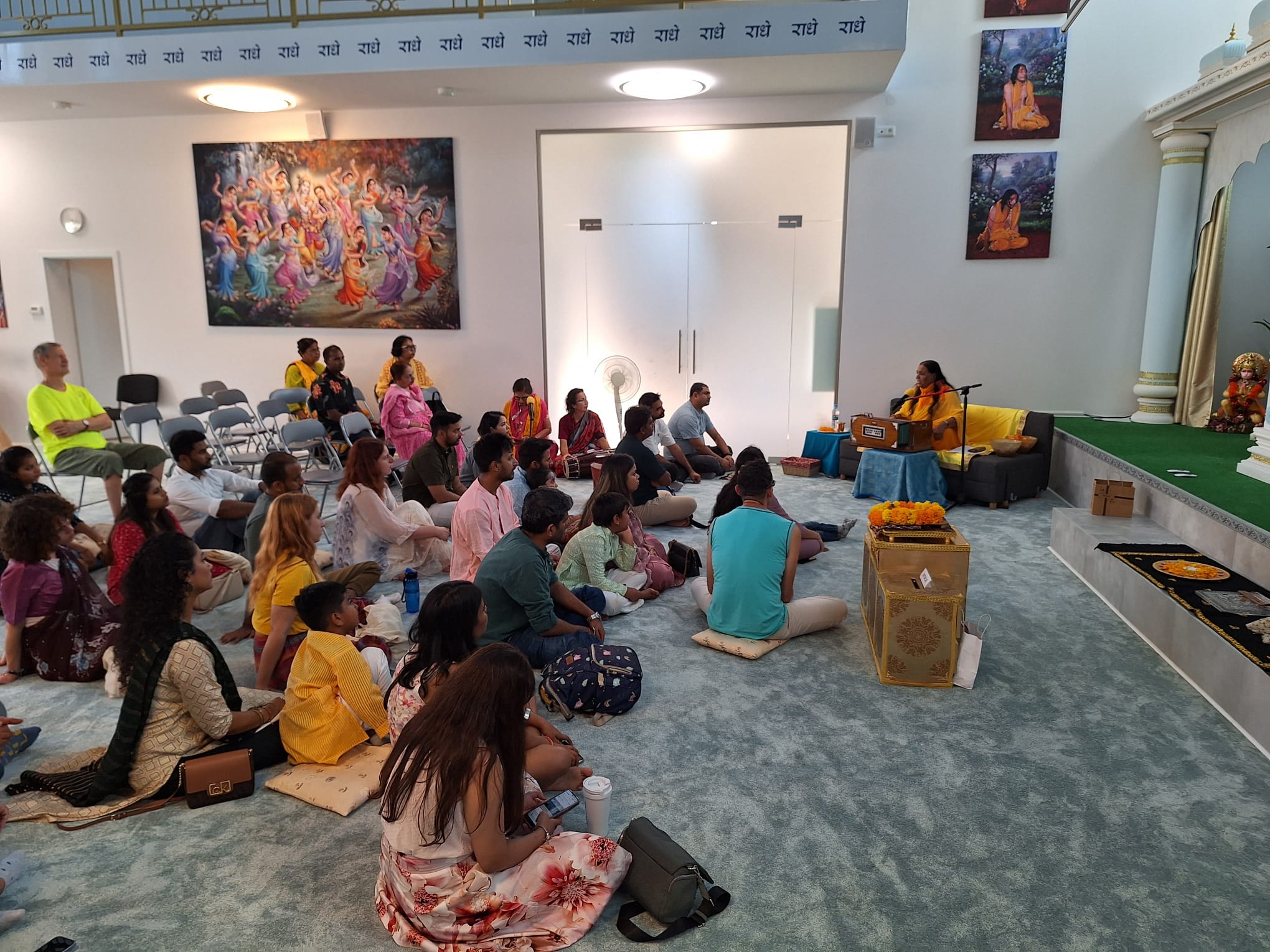 Sushri Gopeshwari Devi led a 5-day Krishna Janmashtami Program in Radha Govind Bhakti Yog Mandir on August 23th-27th 2024. She explained the philosophy behind appearance of Krishna on this world and described His sweet lilas. We chanted and danced together, there was a baby Krishna in a swing, we all celebrated His appearance.